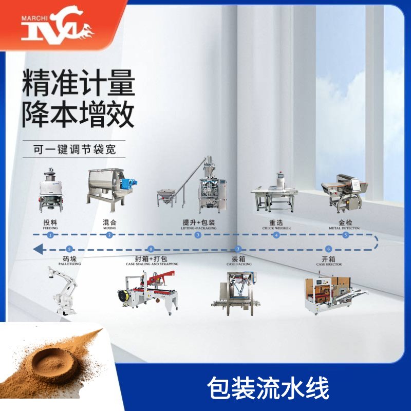 作(zuò)為智能化包裝領域的全球化解決(jué)方案提供商,廣州邁(mài)馳包裝設備(bèi)有限(xiàn)公司(Guangzhou Maichi)深耕包裝流水線、全自動流水線包裝(zhuāng)設備、自動化包裝流水線研發製造多年,以立式粉末包裝機為核心技術載體,打造覆蓋多行業、全場景的自動(dòng)化包裝解決方案。依(yī)托強大的研發實力與(yǔ)行業積澱,公司推出(chū) MC-5000D(1-2kg)、MC1100 (5-15kg)係列立式粉末包(bāo)裝(zhuāng)機(jī),憑(píng)借(jiè)精準計量、無塵作業、穩定高(gāo)效(xiào)的核(hé)心優勢,深度適配食品、醫藥、化工、建材等行業粉(fěn)末物料包裝(zhuāng)需求,構建從單機到整線的一體化服務體(tǐ)係,為全球企業提供降本增效、品質可控的自動化包裝升級支(zhī)持,成為行業認(rèn)可的標杆品牌。