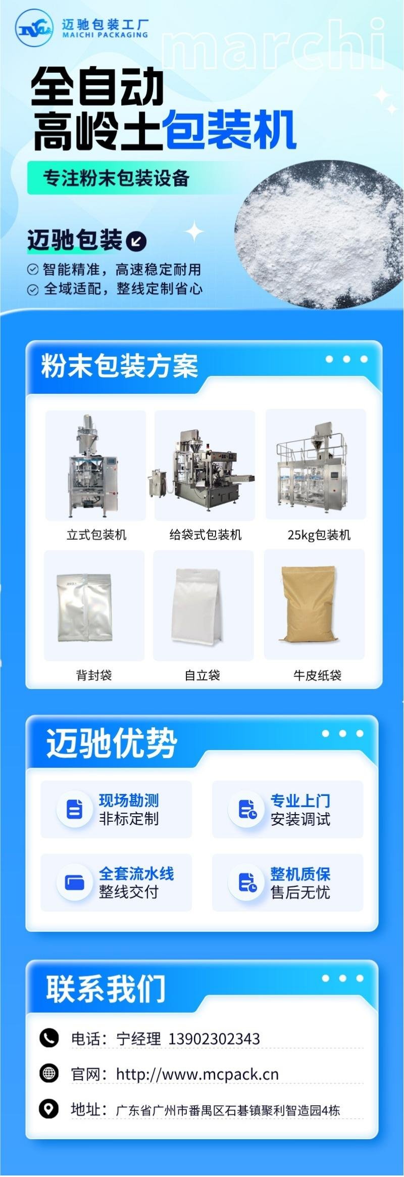 隨著非(fēi)金(jīn)屬礦深加工產業對作業環境和計量精(jīng)度要求的逐年提(tí)升,高嶺(lǐng)土及煆燒高(gāo)嶺土(tǔ)的包裝環節正經(jīng)曆從傳統敞口灌裝向潔淨(jìng)、精準、自動化方向的技術演進。廣州邁馳包裝(zhuāng)設備有限公司與合肥邁(mài)馳包裝設備(bèi)有限(xiàn)公司推出的底充式粉體包裝產(chǎn)線方案,針對揚塵控製、計(jì)量穩定及後端(duān)碼垛集成(chéng)提供了新的解決思路。